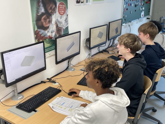 Im Robotik-Workshop programmierten die Schülerinnen und Schüler Lego-Mindstorms-EV3-Roboter, um Betten in einem fiktiven Krankenhaus effizient zu sortieren und zu lagern – Teamarbeit und kreatives Tüfteln waren dabei gefragt. Im „UnderConstruction 3D“-Workshop entwarfen sie eigene 3D-Modelle mit dem CAD-Programm SolidWorks, die anschließend ausgedruckt und als Erinnerung mit nach Hause genommen werden konnten.