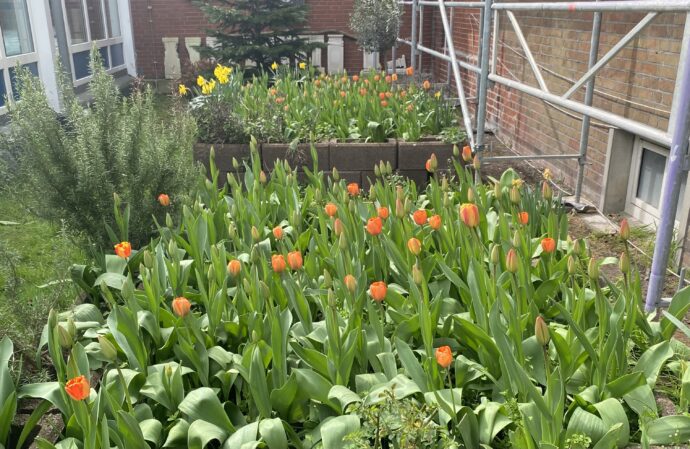 Schon das dritte Jahr in Folge hat die KGS Norderney mit dem Kurs „Gesundheit und Soziales“ unter der Leitung von Frau Schwetje am Projekt „Tulpen für Brot“ (http://tulpenfuerbrot.de) teilgenommen.Es handelt sich dabei um ein Projekt von Kindern für Kinder. Im Herbst haben die Schülerinnen und Schüler 180 Tulpenzwiebeln an begeisterte Hobbygärtner verkauft und 320 im Schulgarten eingepflanzt. In der vergangenen Woche wurden dann die wunderschön blühenden Tulpen aus dem Schulgarten von den SchülerInnen des 5. und 6. Jahrgangs geerntet und verkauft.