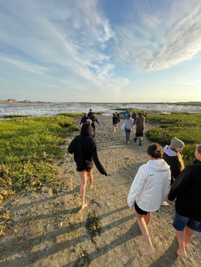 Unser Tag begann um 7.30 Uhr am Surfbecken mit einer Wattwanderung. Begleitet wurden wir von Georg Donner (Labor Seegat) und Bernd Daehne (Dr. Brill & Partner). Uns wurden die Gezeiten und viele Dinge über die Lebensbewohner des Watts erklärt. Ein paar von den Tieren durften wir sogar ausgraben. Nach einer Stunde haben wir uns wieder auf den Rückweg gemacht, haben die Füße gewaschen und sind dann mit unseren Fahrrädern in Richtung Jachthafen gefahren. Dort haben wir uns die Spundwände angeschaut und was an diesen Wänden alles wächst.