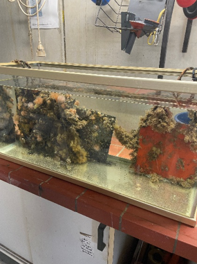 Nach einer kurzen Pause sind wir mit unseren Fahrrädern in Richtung Fähranleger gefahren. Dort wurden uns „Testplatten“ aus dem Wasser gezeigt. An diesen Platten untersucht die Firma Dr. Brill und Partner den Bewuchs im Wasser. Anschließend haben wir uns ein Aquarium mit verschiedenen Testplatten angesehen, auf denen eine Seite mit einer nicht giftigen Beschichtung benetzt wurde und die andere ganz ohne Beschichtung. Der Bewuchs mit Meeresbewohnern kann so direkt verglichen werden. Ab 11 Uhr wurden wir in zwei Gruppen geteilt. Gruppe 1 hat die bei der Wattwanderung gefangenen Lebewesen im Labor SEEGAT genauer untersucht. Gruppe 2 hat weitere Testplatten untersucht, sich im Jachthafen angesehen, wie man die Rümpfe der Schiffe reinigen kann, um einen Bewuchs zu minimieren und hat sich in einer Bootshalle näher mit dem Bewuchs und der Reinigung von Schiffsrümpfen beschäftigt. Gegen 12.30 Uhr durften alle mit neuen Eindrücken und Informationen nach Hause gehen.